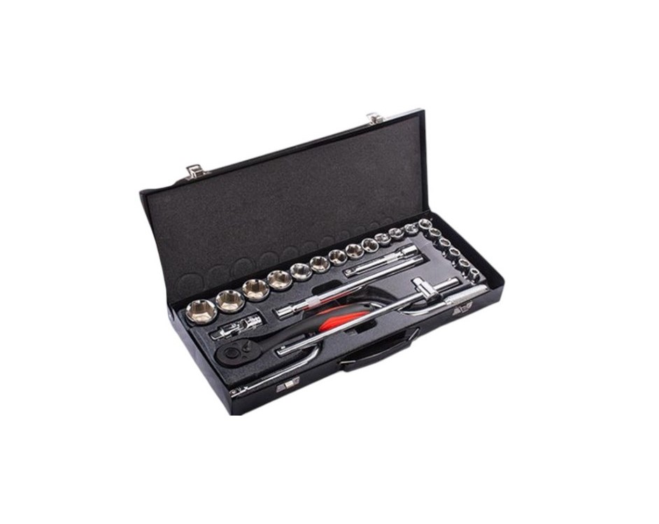 جعبه بکس 24 پارچه هامبورگ شامل 18 عدد بکس 1/2 اینچ 8/10/12/13/14/15/16/17/18/19/20/21/22/24/27/29/30/32
